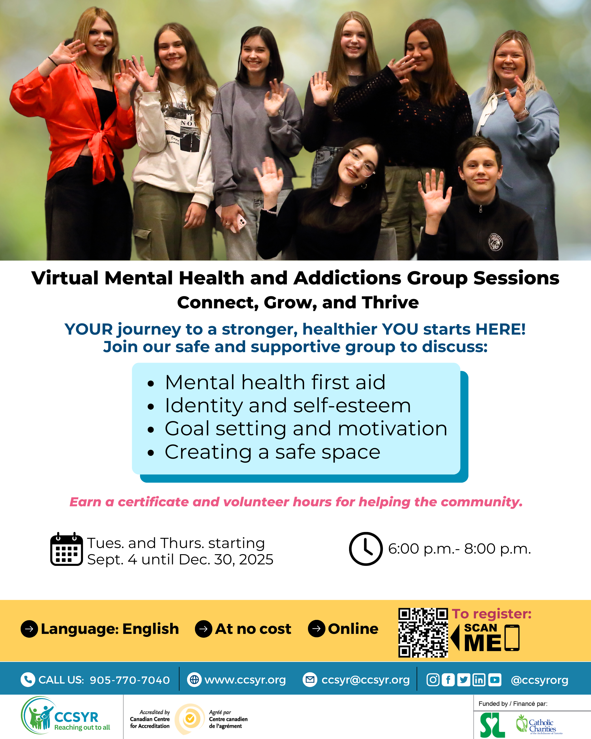 Catholic Community Services of York Region (CCSYR) is pleased to share two free mental health and wellness programs for youth that support young people experiencing challenges such as stress, anxiety, and substance use.